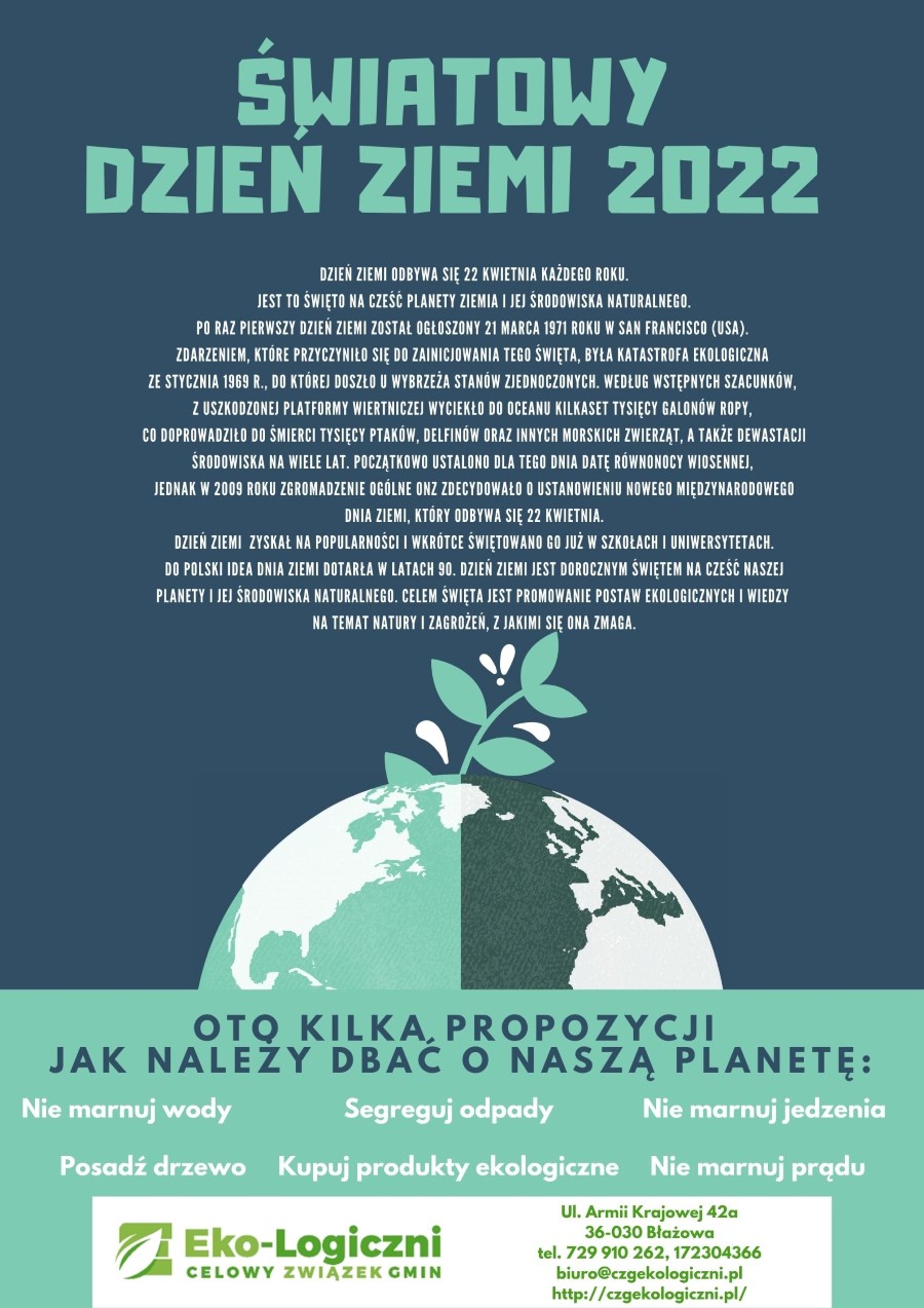 Biuro Celowego Związku Gmin "Eko-Logiczni" w Błażowej informuje, że w dniach 14.04.2022 r. (Wielki Czwartek), 15.04.2022 r. (Wielki Piątek), Punkt Selektywnej Zbiórki Odpadów Komunalnych – PSZOK będzie czynny do godziny 15:00, natomiast w dniu 16.04.2022 r. (Wielka Sobota) „PSZOK” będzie NIECZYNNY.